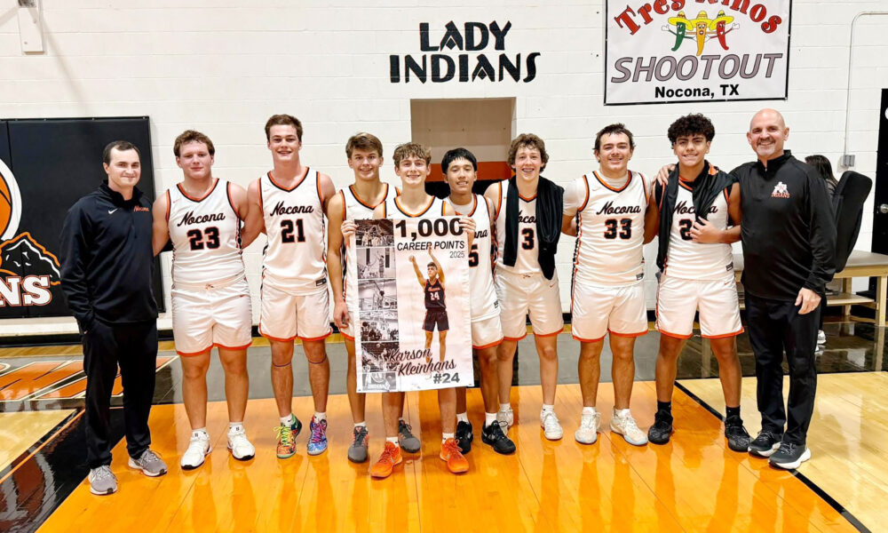 Karson Kleinhans scored his 1,000th point Dec. 9 in helping Nocona get past Newcastle, 83-23. Kleinhans, who scored 29 points, had a hot start in scoring...
